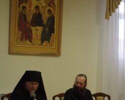 Завершилось наше пребывание на Псковской земле встречей с наместником Свято-Успенского Псково-Печерского монастыря архимандритом Тихоном (Секретаревым), благодаря заботам и попечению которого мы чувствовали себя в Печорах как дома. Несмотря на большую занятость отец Тихон нашел время, чтобы встретиться с нами, побеседовать и сказать на прощание краткое пастырское напутствие.