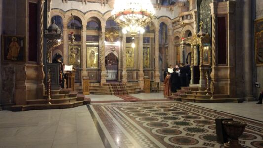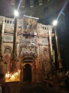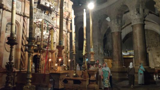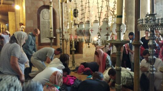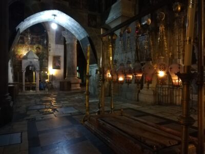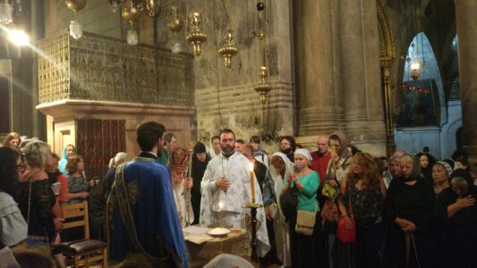 Много всего было за время этой поездки, но, пожалуй, самым главным духовным опытом можно считать еженощные службы на Гробе Господнем или на Голгофе. Каждую ночь в течение всего Успенского поста храм Гроба Господня открыт для паломников, и мы, конечно же, использовали такую уникальную возможность для молитвы и причастия в этом святом месте. Ничто не может сравниться с тихой ночной службой в храме Воскресения Христова. В этом году было особенно тихо, паломников было мало, и только в редкие ночи храм был полон паломников из Греции, Румынии, России, Украины и других мест. И всё равно это было несравнимо с огромным потоком туристов, посещающих это место в дневное время.