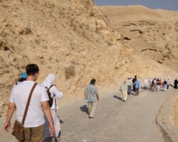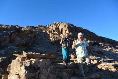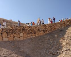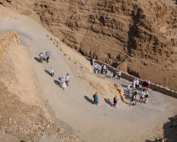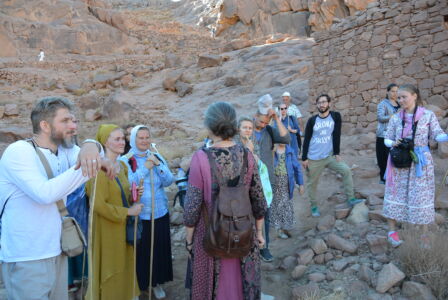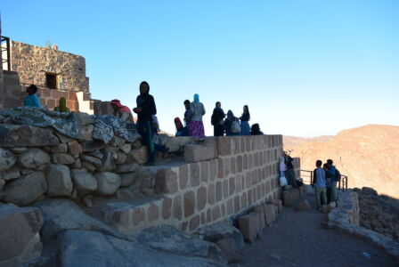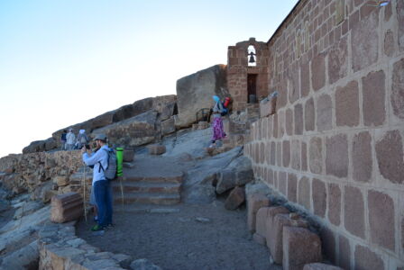 Итак, на второй день по приезде, получив ключи от Троицкого храма, около 11 часов вечера мы начали свой подъем на гору Моисея из монастыря св. Екатерины. Такое непростое путешествие требует сил и энергии, и только с Божьей помощью и молитвой все преодолели этот довольно длинный подъём, а ведь в нашей группе были и люди среднего возраста, для которых такой путь был почти невозможным. Надо ещё отметить, что мы не ели и не пили большую часть времени, т.к собирались причаститься на службе. Все мы знаем, что у Бога нет ничего невозможного, и наше восхождение было ещё одним доказательством Божьей милости и помощи, а это в свою очередь хорошо укрепляет в вере. Поднимаясь, каждые 30-40 минут делали остановки и служили краткие молебны, так удавалось немного передохнуть и помолиться. Поднялись мы уже часам к 3 ночи и сразу начали служить. Священник, диакон, чтецы и певчие в поездке были свои, и они нашли в себе силы отслужить после такого тяжелого подъема утреню и Литургию! Служба закончилась уже рано утром, и перед нами открылись великолепные виды Синайских гор. Красота невероятная! Передать это благолепие нельзя даже через фотографии. Это надо видеть самому! Кстати, множество туристов каждый день поднимаются туда именно с целью встретить рассвет на вершине горы. Ну вот, насладились мы горными пейзажами и отправились вниз, и спуск этот был не менее трудным, чем подъём. С вершины вниз идёт 750 каменных ступеней, а потом дорога раздваивается на длинную, по которой мы поднимались, и на короткую. Вот и наша группа решила разделиться. Одна часть пошла тем же путём, что мы шли наверх, по обычной горной дороге, а вторая часть группы пошла так называемой «монашеской тропой», которая состоит из 3750 ступеней «короткого пути» разной сложности. Пришли мы одновременно, но впечатления, я вам скажу, были незабываемые. Спустившись и потрапезничав в монастыре, мы сели в автобус и направились в сторону египетско–израильской границы.
