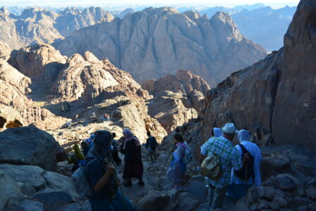 Всем нам хорошо знакомая по Ветхому Завету (книге Исход) гора Синай (или по–другому гора Хорив) – это именно та гора, где Бог говорил с пророком Моисеем и где пророк получил от Бога скрижали Завета. Хоть эти скрижали и утеряны, а мы получили от Господа новые заветы, но всё же тысячи христиан ежегодно поднимаются на вершину этой горы, чтобы прикоснуться к этой святыне, вспомнить подвиги святых отцов и быть сопричастными великому таинству. На этой же горе, кстати, подвизались святой Иоанн Лествичник и святой пророк Илия (его келия находится как раз на пути к вершине).