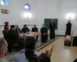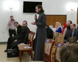 Первый день конференции завершился круглым столом “Миссионерство среди протестантов”, который провёл иерей Георгий Максимов. После краткого вводного слова все желающие могли задать интересующие их вопросы по теме проповеди среди сектантов и апологетики Православия.