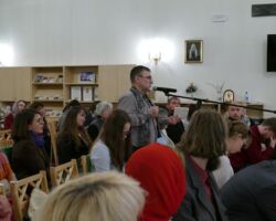 Во второй день конференции, 11 мая, с раннего утра вплоть до начала вечернего богослужения участники и гости конференции делились опытом и задавались вопросами на самые различные миссионерско-апологетические темы.